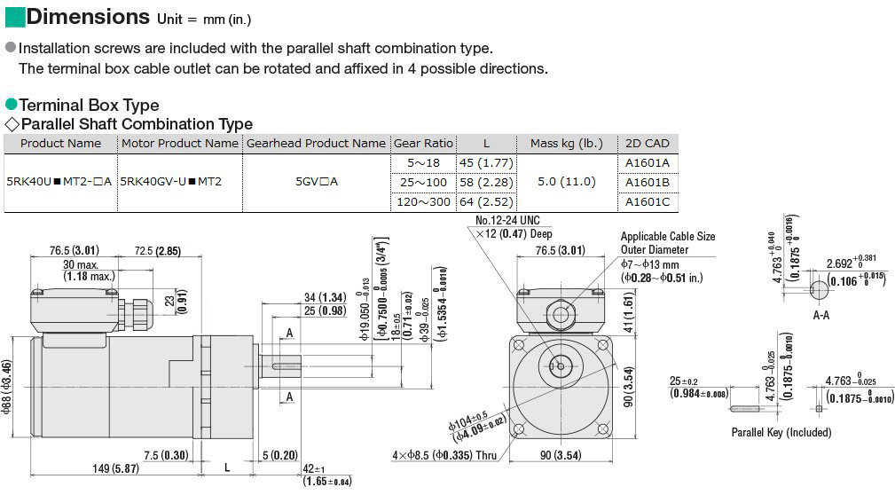 - 5RK40GV-UCMT2 [Motor] 5GV120A [Gearhead] |