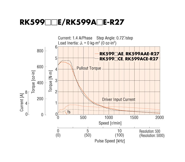 The RK Series incorporates new functions and state-of-the-art technologies to achieve the ultimate performance of a stepping motor. The series offers various types of motors including the standard type, IP65 rated motor type, Harmonic, Planetary and Taper Hobbed geared stepping motors. Three frame sizes of 1.65 in. (42 mm), 2.36 in. (60 mm) and 3.35 in. (85 mm) [3.54in. (90 mm)] are available. The wide-range of motor variations and affordable price make the RK Series a perfect solution for your various applications. Smooth Drive Function The Smooth Drive Function ensures low-vibration and low-noise operation at low speeds by internally executing microstepping within the driver, working independently of the input pulse frequency of your controller. The motor's basic step angle is divided by a maximum of 1/250 without the use of a reduction mechanism or other mechanical means. Sixteen resolution levels are available, enabling fine positioning and further reduction of vibration and noise. A motion sequence of "low-speed transfer > high-speed return" can easily be performed without the need for changing from a microstep pulse frequency to a full-step operation. The RK Series can also be used in full-step operation. The RK Series can be used with most common power supplies available around the world. They also comply with international standards, ensuring safe operation. Angle accuracy may decrease during use of microstep drivers, due to the effect of current control. However, the drivers used in the RK Series are designed to ensure that the motor operates at maximum accuracy. The RK Series, with its high starting frequency, shortens the machine cycle without affecting acceleration/deceleration rates. This produces a significant savings in time for an operation in which the same cycle is repeated thousands of times each day. The RK Series complies with the UL/CSA and EN standards. (With the RK54* type, only the driver conforms to the CSA standard.) The CE marking certifies compliance with the EMC Directive and Low-Voltage Directive. Additionally, the RK Series conforms to the EMC Directive only through its use of surge arrester. The RK Series doesn't require an external ferrite core or filter in the motor line or power line. [Excluding motors with a frame size of 1.65 in. (42mm)] The life of a motor is affected by its bearing. The RK Series achieves approximately twice the life of a conventional motor by adopting a modified bearing. [Available only with the standard type with a frame size of 2.36 in. (60mm) or 3.35 in. (85mm).] The RK Series stepping motor with encoder offers high torque and precise feedback capability. |