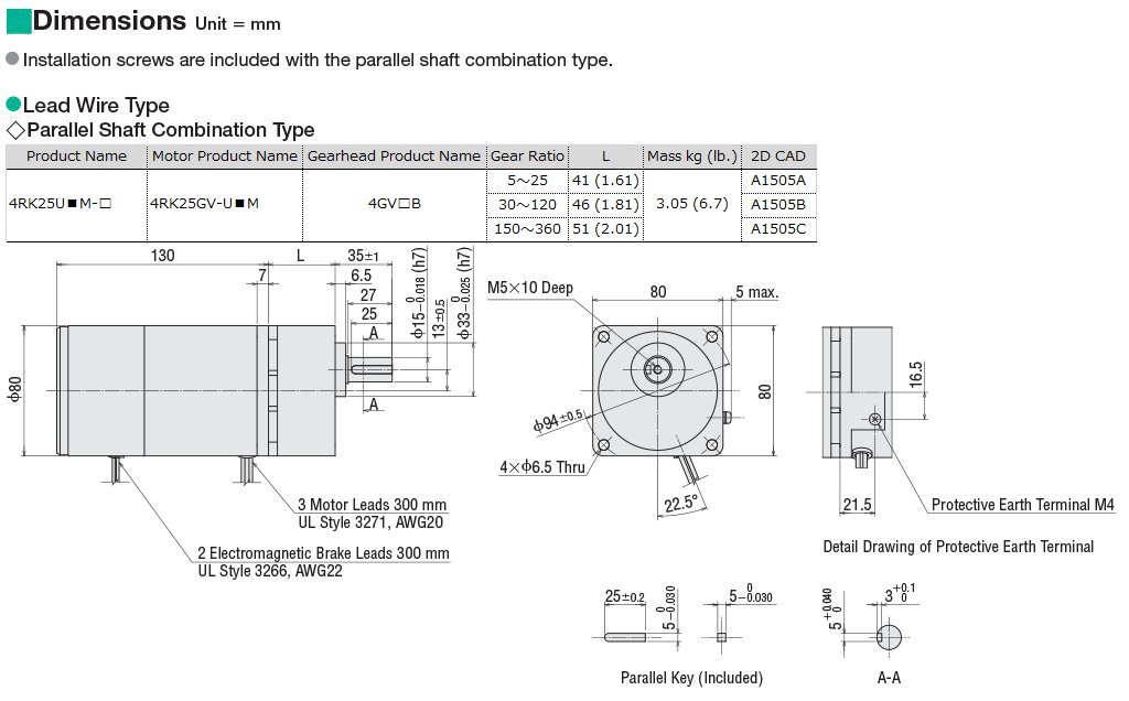 - 4RK25GV-UAM [Motor] 4GV18B [Gearhead] |