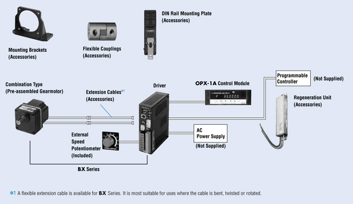 - 6GH10K (Gearhead) BXM6400-GH (Motor) BXD400B-S (Driver) OPX-1A (Control Module) |