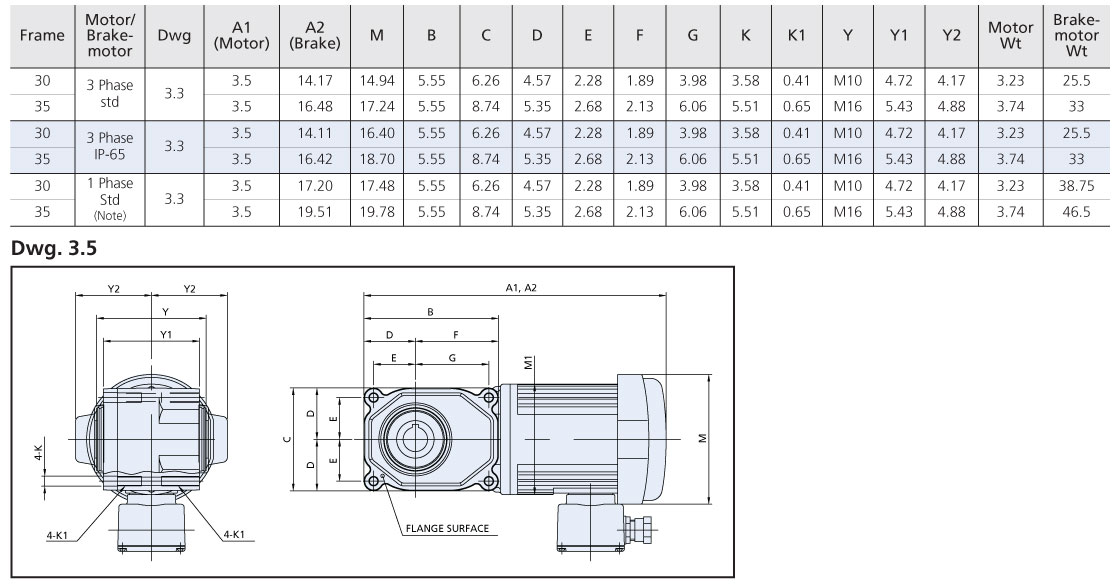1690 RPM (208 V) 1710 RPM (230 V) 1710 RPM (460 V) |