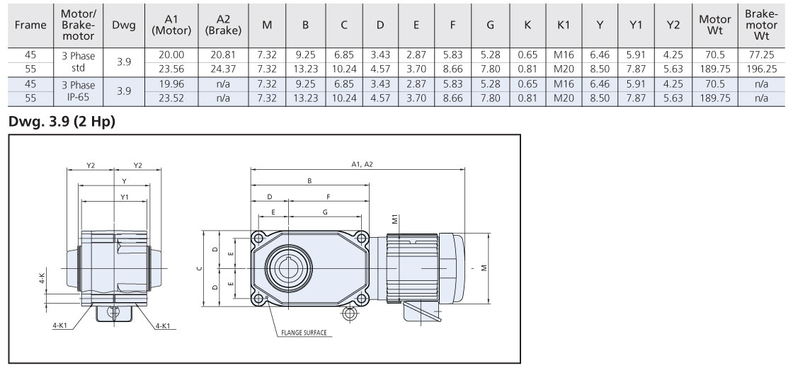 1730 RPM (208 V) 1720 RPM (230 V) 1720 RPM (460 V) |