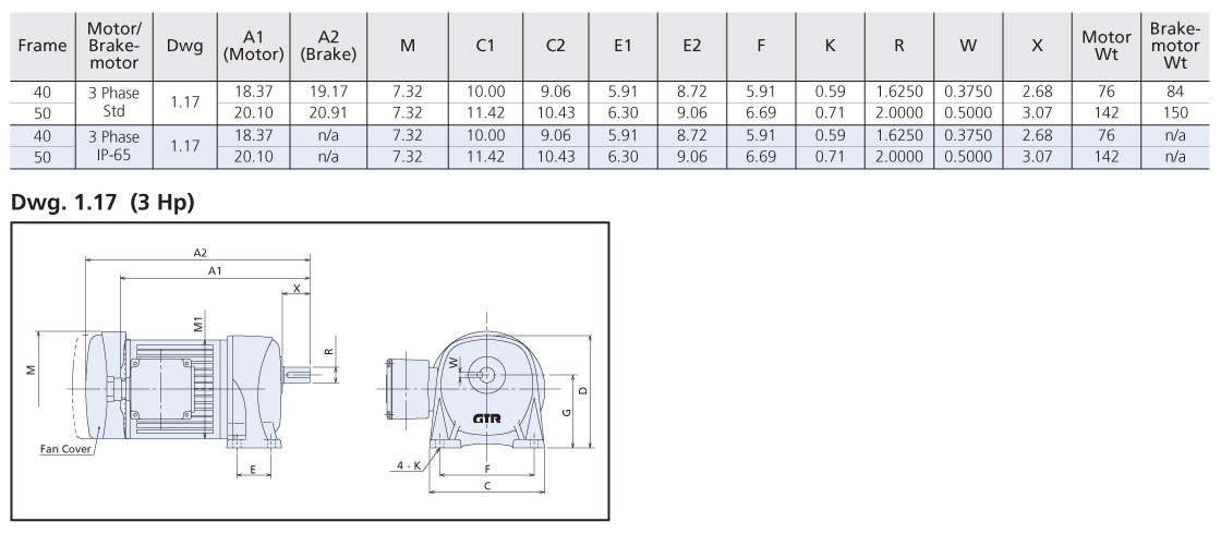 1710 RPM (208 V) 1720 RPM (230 V) 1720 RPM (460 V) |